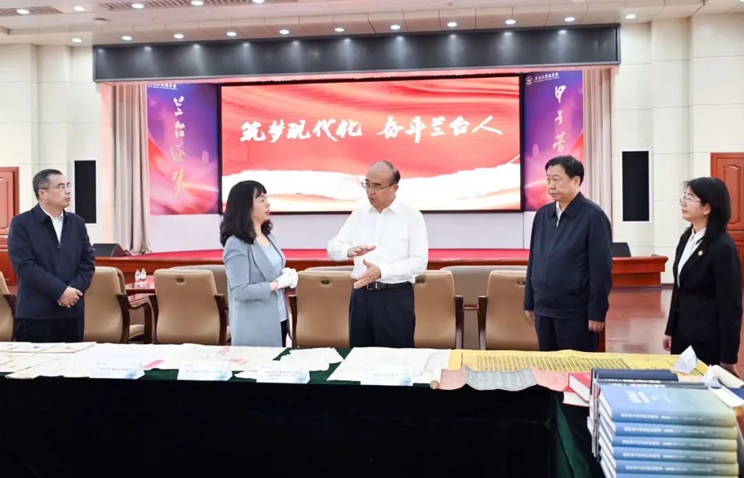 許勤在省檔案館報(bào)告廳,察看特藏檔案