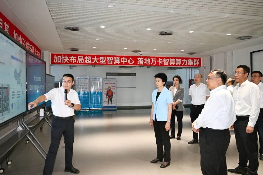 在中國移動(哈爾濱)智算中心,省委副書記、省長梁惠玲聽取項目建設情況介紹。