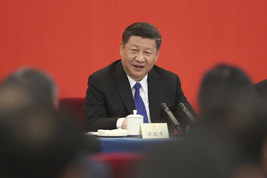 2018年3月4日下午,中共中央總書記、國家主席、中央軍委主席習近平看望參加全國政協十三屆一次會議的民盟、致公黨、無黨派人士、僑聯界委員,并參加聯組會,聽取意見和建議。新華社發(盛佳鵬 攝)