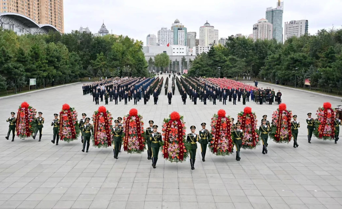 黑龍江省暨哈爾濱市烈士紀念日向英雄烈士敬獻花籃儀式現場。