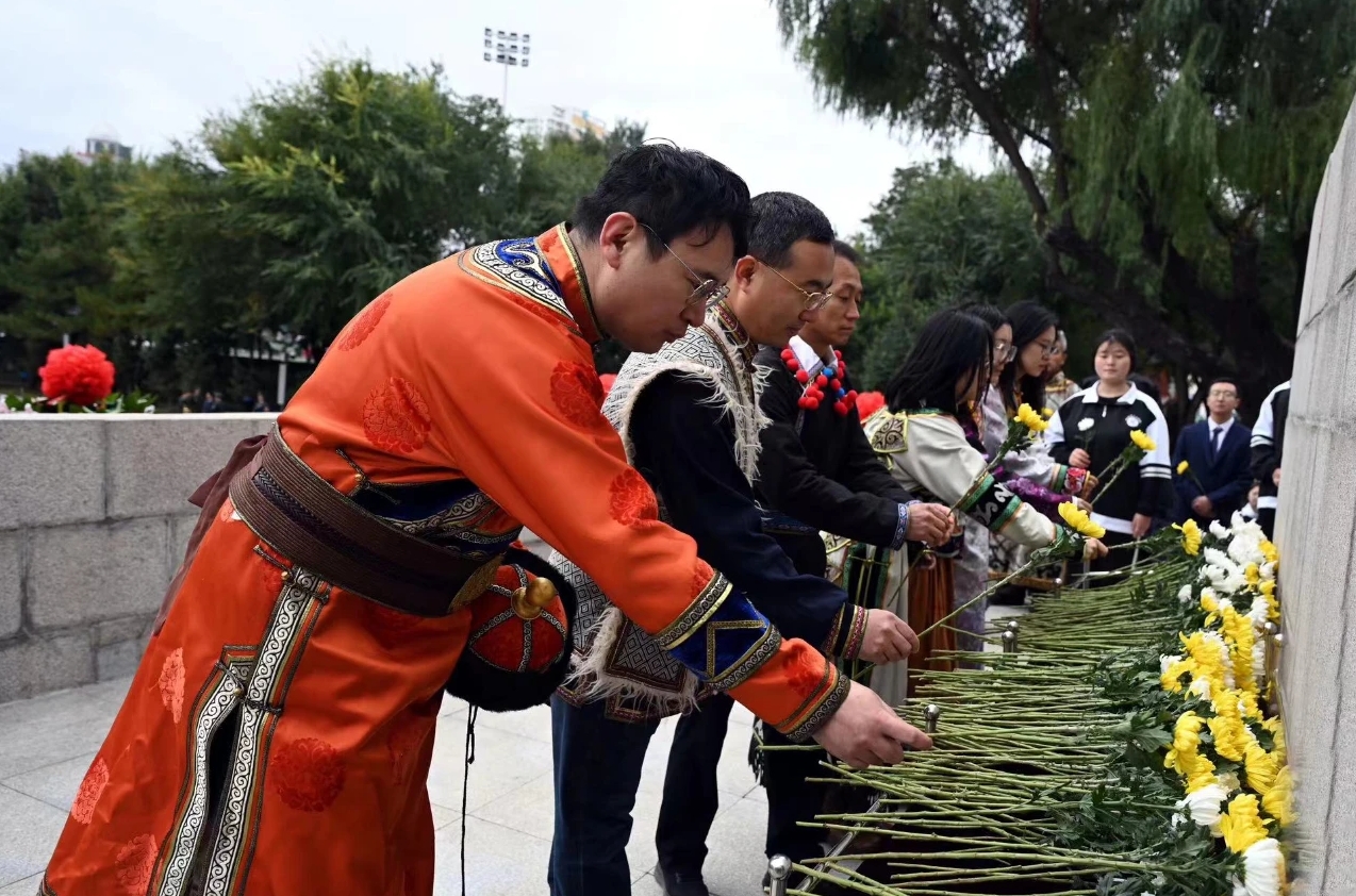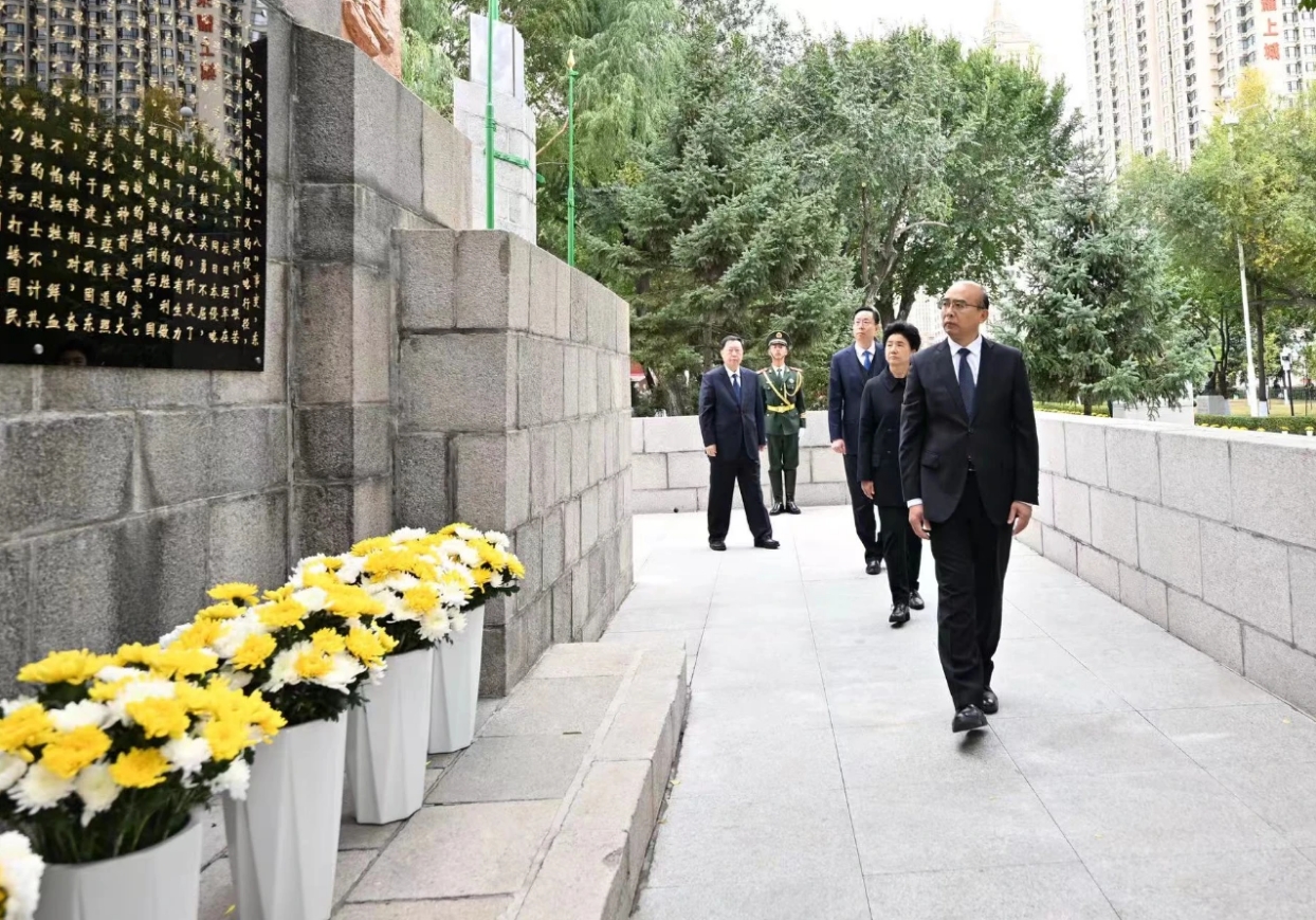 省及哈爾濱市各界代表向烈士紀念塔敬獻鮮花。