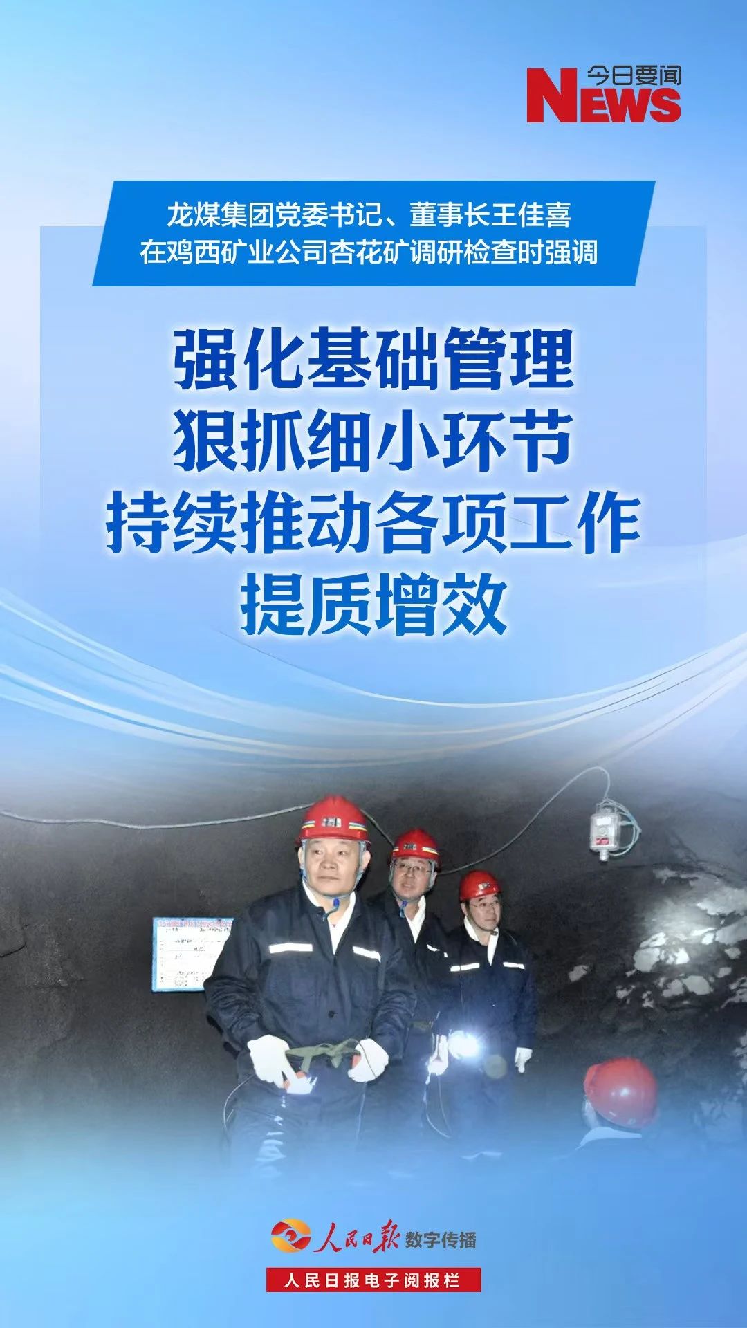 10月28日上午,集團公司黨委書記、董事長王佳喜在雞西礦業公司杏花礦調研檢查時強調,要全面落實上級相關工作部署要求,切實增強抓好四季度安全、生產、經營工作的思想自覺和行動自覺,深入踐行“細節決定成敗”工作理念,于基礎扎根、于細處著手、于實處發力,強化基礎管理,狠抓細小環節,推動各項工作取得新突破、開創新局面,進一步夯實高質量發展基礎。集團公司總工程師于會軍參加。