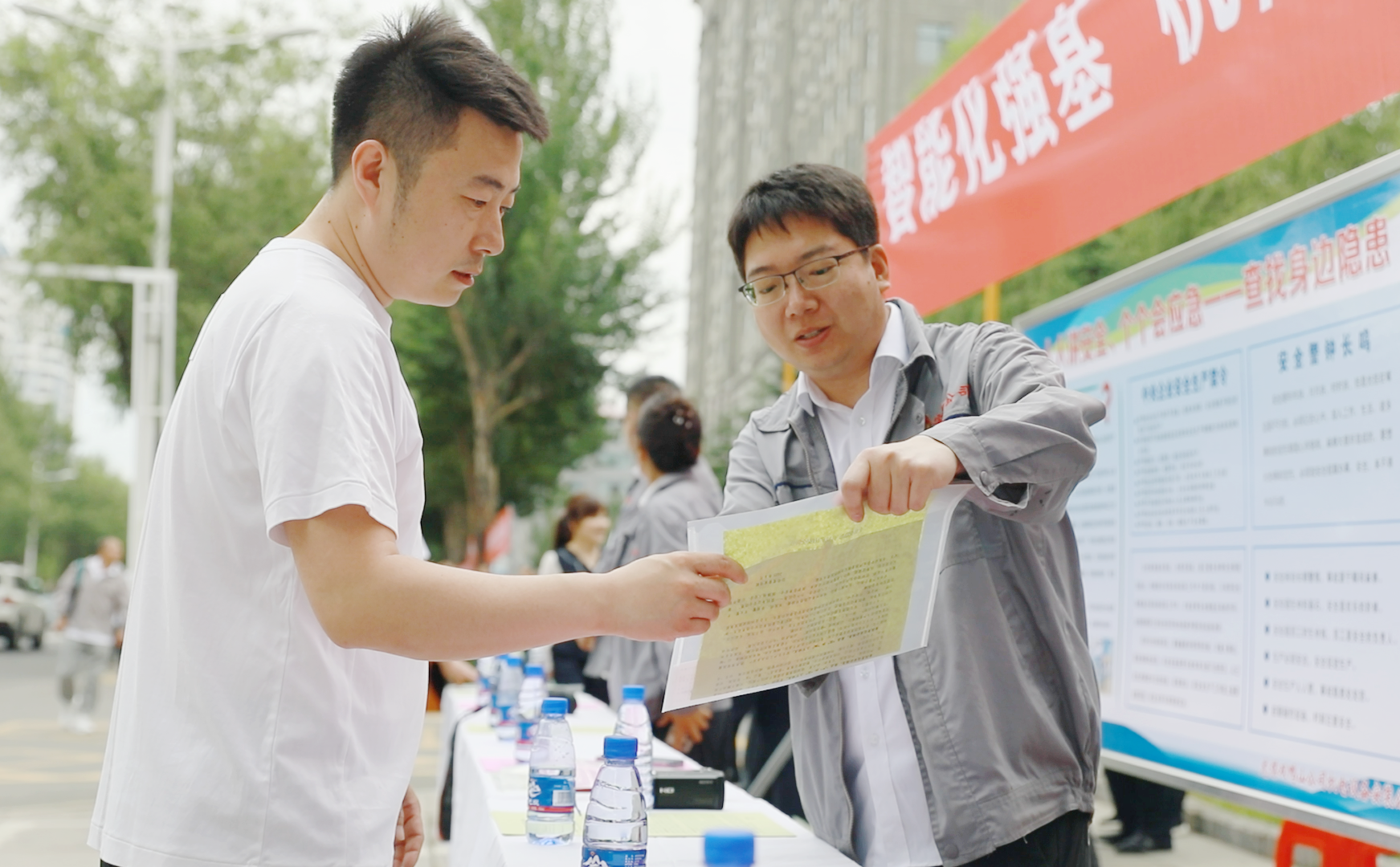 雙鴨山礦業公司機關大樓門前人頭攢動,氣氛熱烈。各單位咨詢臺整齊排列,擺放著精心制作的宣傳展板,內容涵蓋安全法規解讀、典型事故案例分析、應急救援技巧等,吸引過往人員駐足觀看。