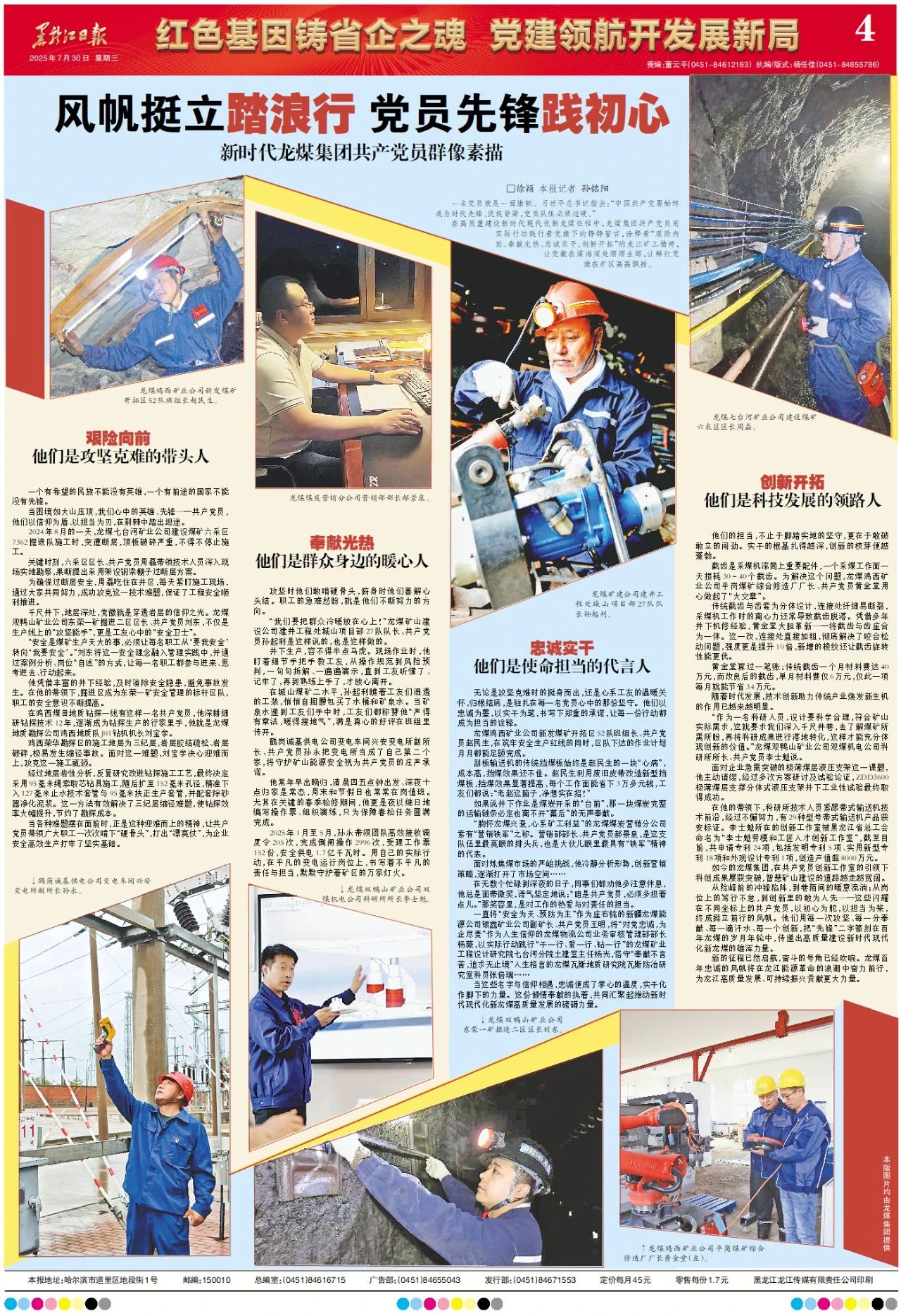從險峰前的沖鋒陷陣,到巷陌間的暖意流淌;從崗位上的篤行不怠,到創新里的敢為人先——這些閃耀在不同坐標上的共產黨員,以初心為舵,以擔當為槳,終成挺立前行的風帆。他們用每一次攻堅、每一分奉獻、每一滴汗水、每一個創新,把“先鋒”二字篆刻在百年龍煤的歲月年輪中,傳遞出高質量建設新時代現代化新龍煤的雄渾力量。