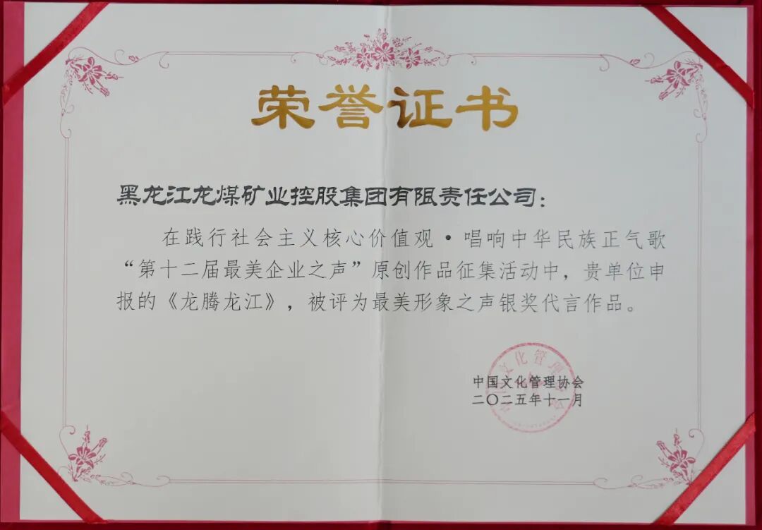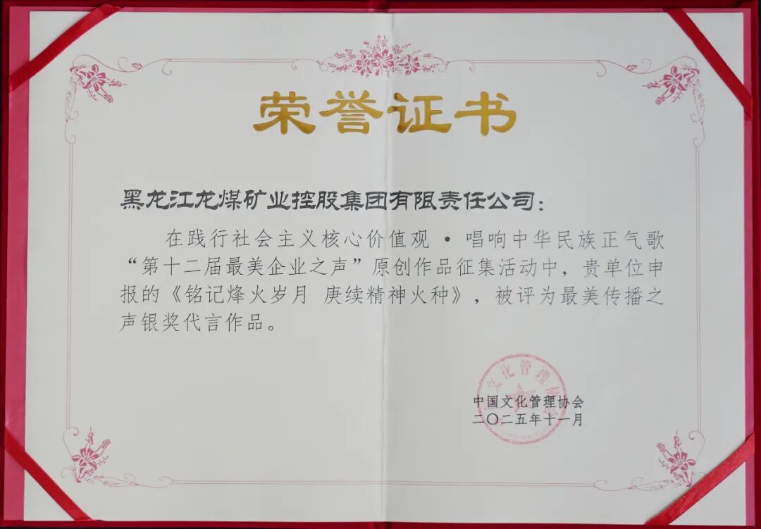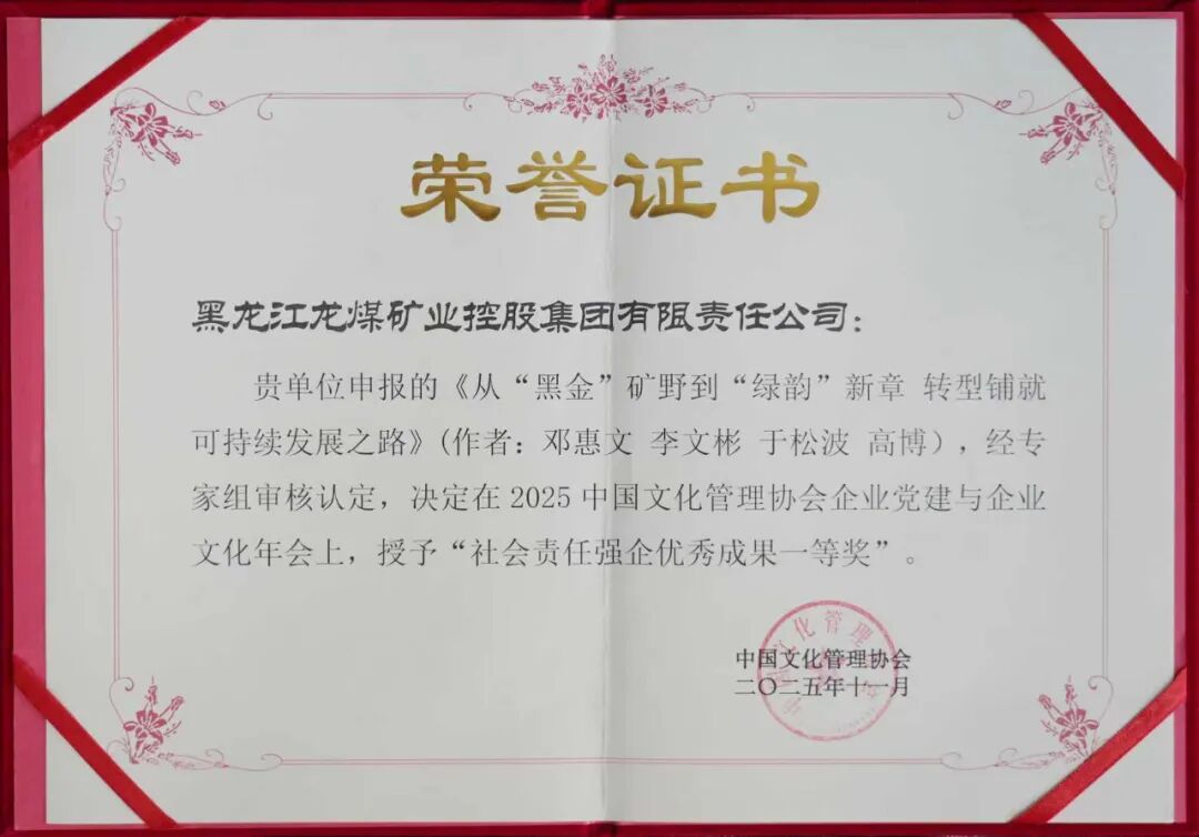 由黑龍江龍煤集團申報的《從“黑金”礦野到“綠韻”新章 轉型鋪就可持續發展之路》被評為社會責任強企優秀成果一等獎,原創作品《龍騰龍江》《銘記烽火歲月 賡續精神火種》分獲最美企業之聲展演銀獎作品。此外,龍煤集團還榮獲“2025年度新時代企業文化建設五星單位”“2025年度優秀組織單位”等多項殊榮。